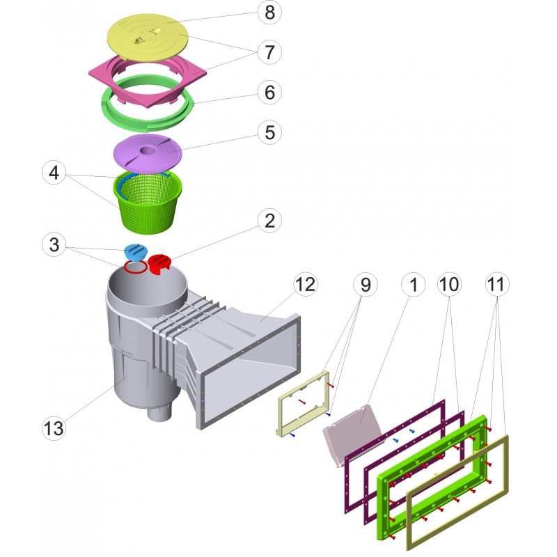 Katalog náhradních dílů podle schématu pro Skimmer Astral 17,5 l do fólie, otvor 372 x 155 mm.(11311).