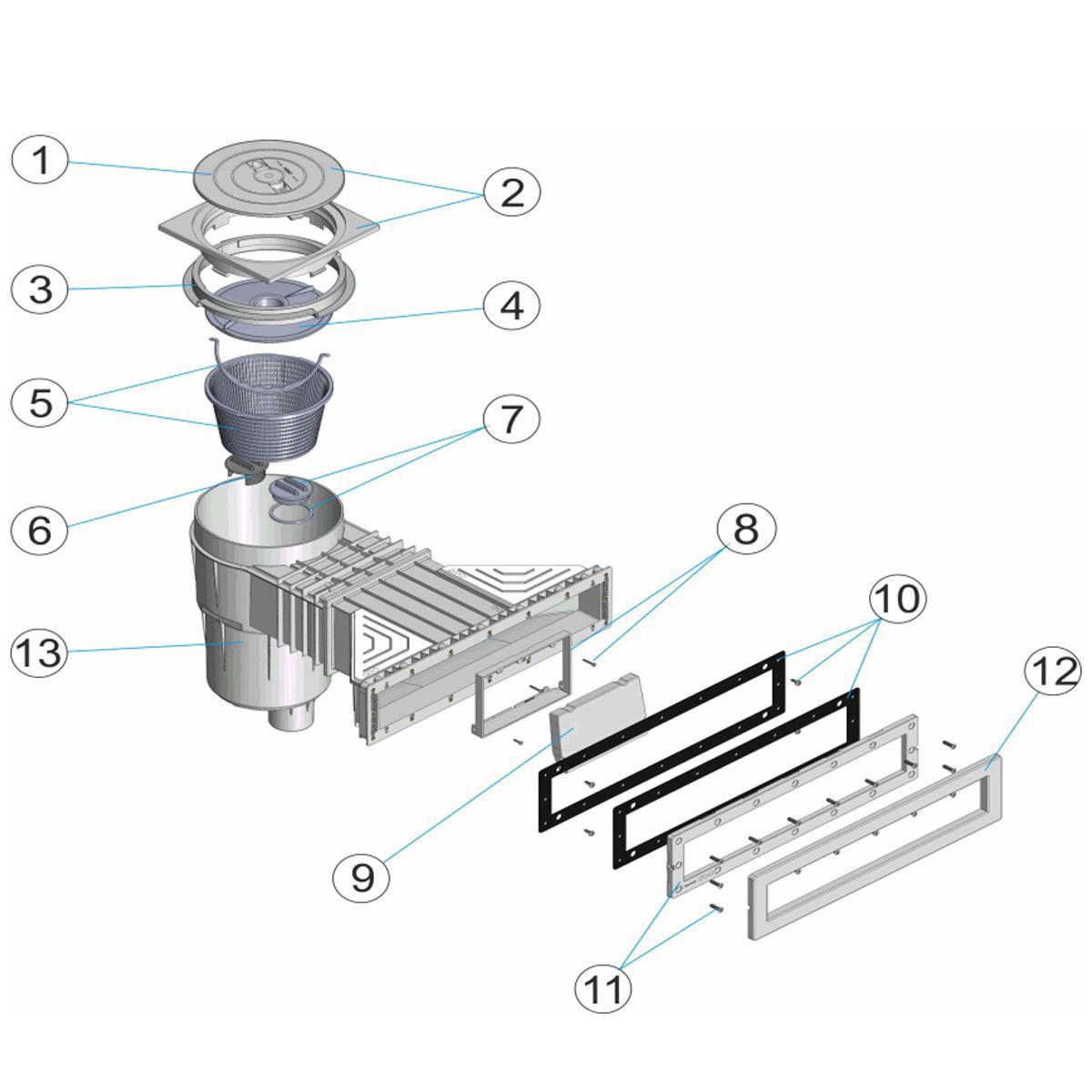 Katalog náhradních dílů podle schématu pro Superskimmer široký 17,5 l do fólie, otvor 495x80 mm.
