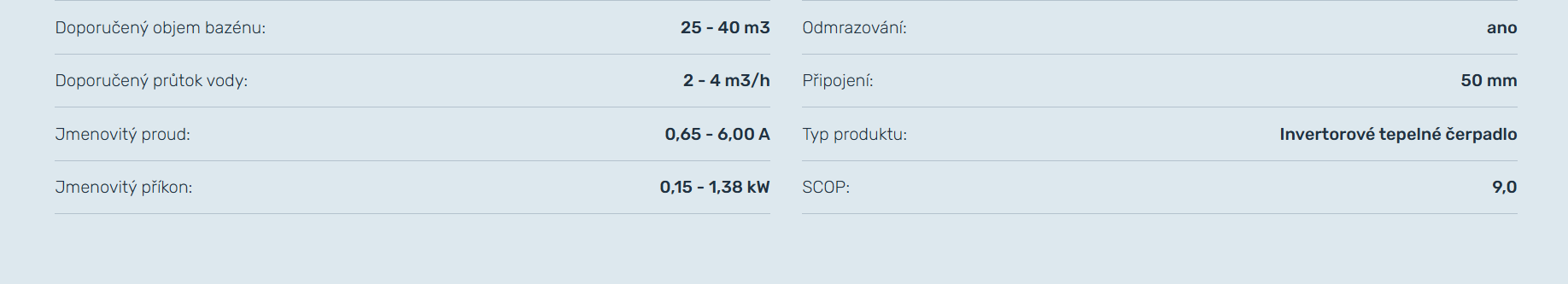 Doporučený objem bazénu: 25 - 40 m3
