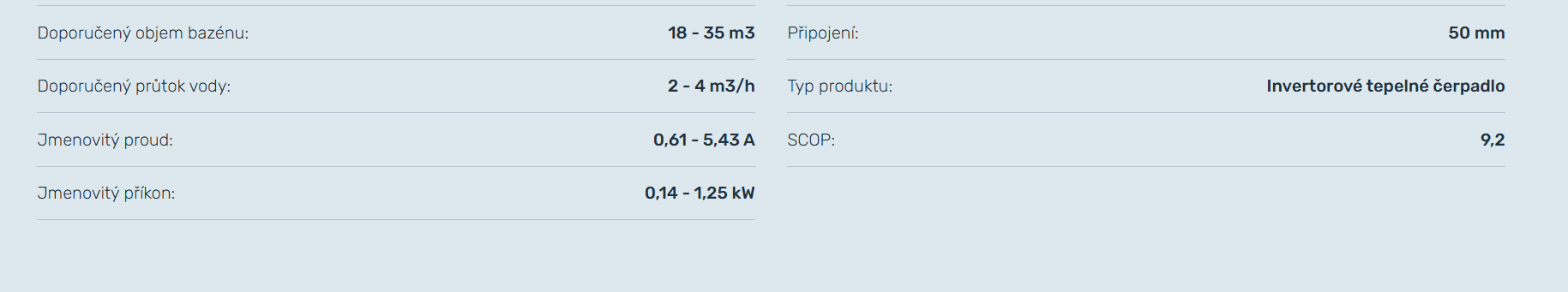 Doporučený objem bazénu: 18 - 35 m3