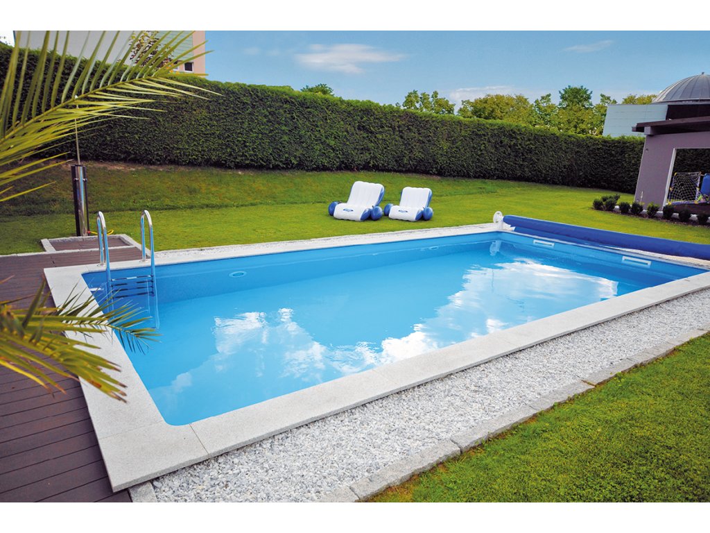 Komplett Pool Set CF Block 7,0 x 3,5 x 1,5 m / 0,6 mm - Blaue Folie (Pool, Filtration, Folie, Skimmer)