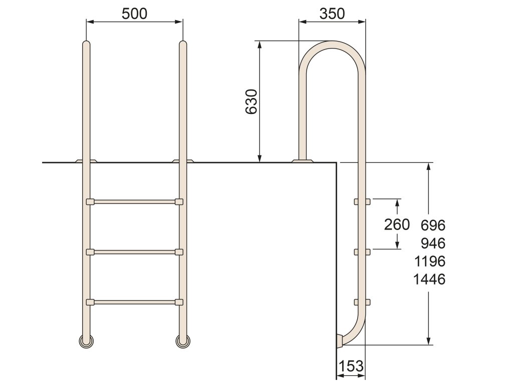 Die Leitern sind für private und kommerzielle Pools ausgelegt. Sie bestehen aus poliertem Edelstahl. AISI 316 Durchmesser 43 mm. Die Note wird mit Anti -Slip ergänzt. Profile. Die Verankerung wird mit einem Gehäuse und einer Klemme für die Erdung geliefert. & nbsp; Anti -Flip -Profile Anker Tonhöhe Darüber hinaus ergänzt mit: Double First Stufe, Support -Gelenke & nbsp; und Anchorage FlanscheZusätzliche Parameter