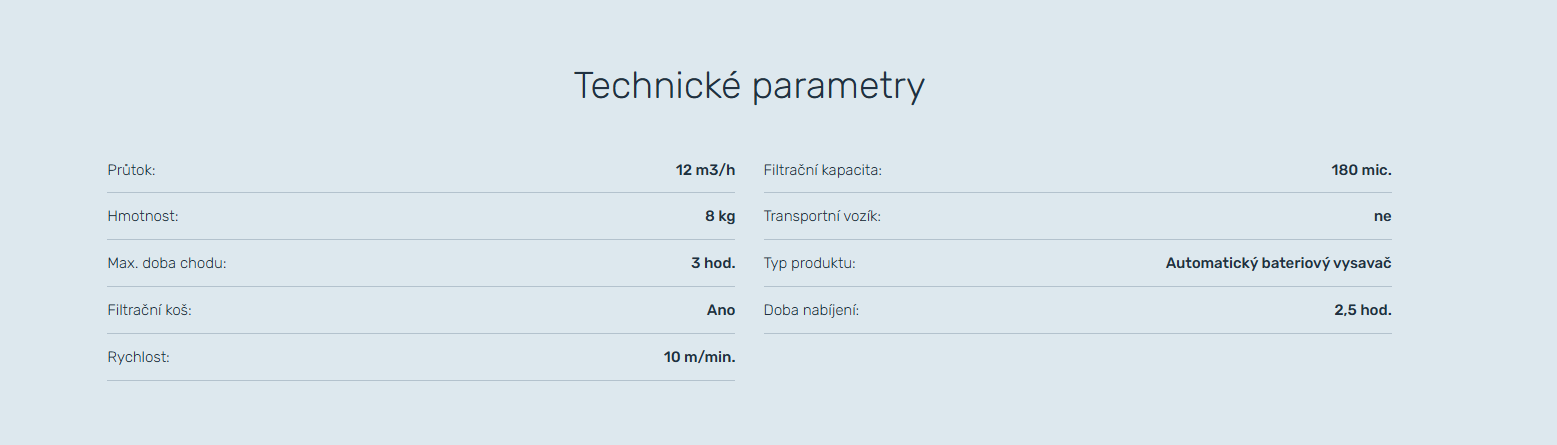 Ideální pro všechny typy velkých bazénů až do 120 m² - poskytuje až 180 minut nepřetržitého provozu (plné nabití baterie již po 2,5 hodinách).
