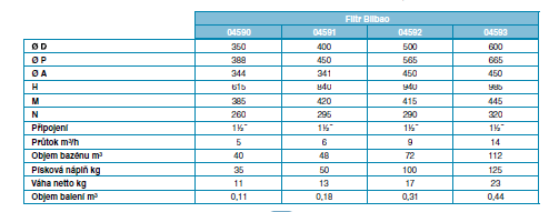 filtr BILBAO D 600 14 m3/h bez 6 - ti cestného ventilu 1, 5˝