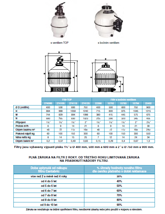 filtr CANTABRIC D 750 21 m3/h bez 6 - ti cestného ventilu 2˝ | BazényDnes