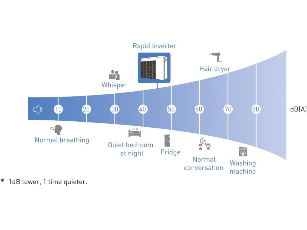 Od modelové řady 2020 je WI-FI modul integrován do tepelného čerpadla a není jej nutné dokupovat. Rapid Inverter je plně invertorové tepelné čerpadlo. Je osazeno invertorovým kompresorem a motorem ventilátoru, díky čemuž se dá korigovat plynule příkon i rychlost ventilátoru. Bazén je díky tomu inteligentně vytápěn s maximální efektivitou. Tepelné čerpadlo Rapid Inverter se automaticky nastaví na výkon 25% až 100% podle aktuální potřeby vytápění. Většinu času běží pouze při střední nebo nízké rychlosti, což maximalizuje efektivitu. Když Rapid Inverter běží při střední nebo nízké rychlosti pro udržení teploty bazénu, je hlučnost kompresoru extrémně nízká. Rapid Inverter má v závislosti na velikosti bazénu efektivitu COP až 16 (při teplotě vzduchu 26°C, vody 26°C a vlhkosti vzduchu 80%) Úspora energie -- ve srovnaní s běžným tepelným čerpadlem až 2x levnější provoz Výkon chlazení: 10,0kW Nově mají tato tepelná čerpadla chladivo R32. SCOP - "Seasonal COP" - sezónní topný faktor při standardizovaných teplotách a podmínkách Hodnota SCOP : 8,7 Produktové videoDoplňkové parametry