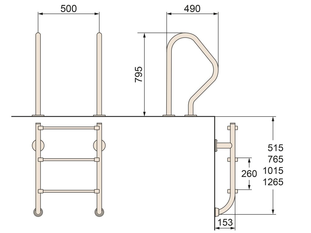 Rebríky sú určené pre súkromné a komerčné bazény. Sú vyrobené z leštenej nehrdzavejúcej ocele. AISI 316. Úrovne sú doplnené protišmykom. Lanovky. Kotvy sú dodávané s krytom a prízemnou svorkou. Dvojdielne bazénové rebríky sú určené pre bazény, ktoré sú vybavené valiacim systémom pre plachtové rolety alebo rolety atď. Časti, súčasti a príslušenstvo strojov položky 8471 Puzdro kotvy + možné pridať Dvojitý prvý stupeň Kotviace príruby Nosné kĺbyDodatočné parametre