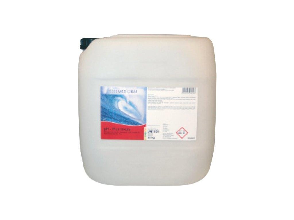 pH - Plus, sloužící ke zvýšení pH hodnoty vody. pH plus - tekutý ke zvýšení pH, vhodný pro automatická dávkování dávkování: 15g na m3 zvýší hodnotu pH o 0,2 Co je to pH? pH je negativní logaritmus koncentrace protonů nebo vodíkových iontů (H+) v kapalině, v našem případě vodě.Pokud je koncentrace protonů vyšší než oxidu vodíku (OH--), voda je kyselá.Pokud je tomu naopak, je zásaditá.Hodnotu správného pH vody je třeba znát. Ideální hodnota pH standardního bazénu je mezi 6,9 a 7,4 v závislosti na krytí bazénu a kvalitě vody. pH mořské vody je mezi 8 a 8,5 a vysokohorské vody kolem 7.Doplňkové parametry