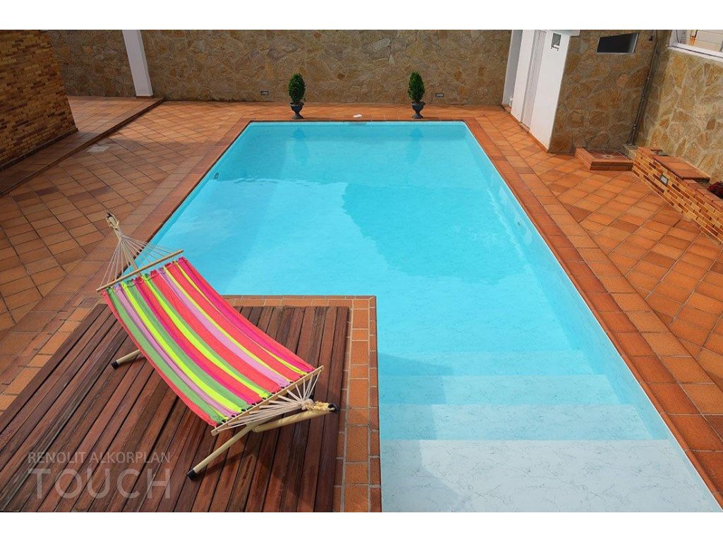 ALKORPLAN je vysoce pevná a tvárná bazénové fólie z měkčeného PVC s výztužnou vložkou z polyesterové tkaniny. Fólie je opatřena akrylátovou antibakteriální vrstvou, která chrání povrch před poškozením, starnutím, zvyšuje UV stabilitu fólie a zamezuje růstu bakterií. ALKORPLAN TOUCH je nejsilnější a nejodolnější fólie na trhu a má přirozenou povrchovou úpravu. TOUCH je unikátní pro své 3D vyražené výtisky, které jej činí jedinečným jak hmatově, tak vizuálně.Doplňkové parametry