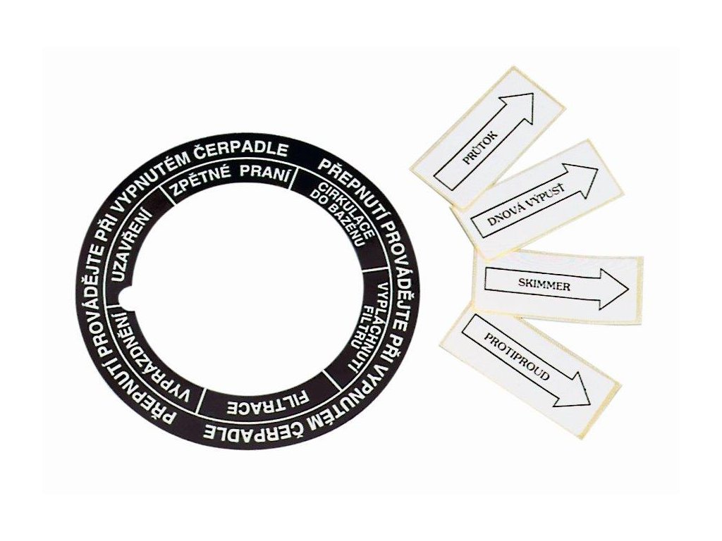 Samolepící popis poloh šesticestného ventilu ( Midas, Praher, Speck, ). S vyznačením jednotlivých funkcí pro snadnou obsluhu ventilu.Doplňkové parametry