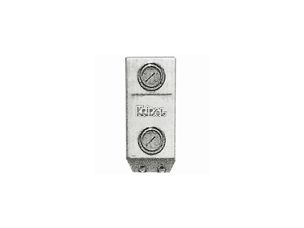Dvojitý vertikální panel s dvěma glycerinovými manometry usazenými svisle na polyesterové základně. Určeno pro měření tlaku ve velkých komerčních filtrech. Připojení : plastovou hadičkou 6/4mm.Doplňkové parametry